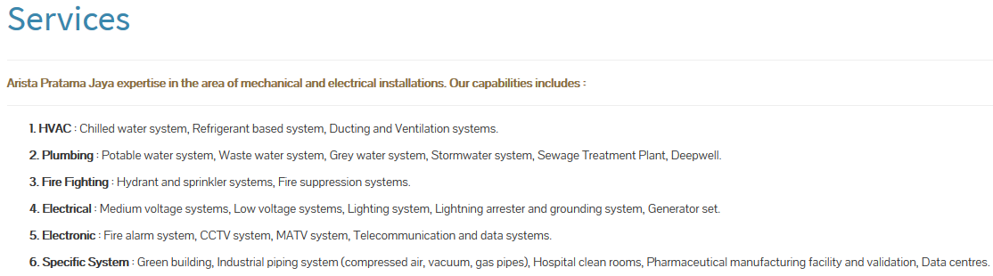 Arista Pratama Jaya didirikan pada tahun 1982 sebagai perusahaan teknik dan kontraktor yang berspesialisasi dalam instalasi layanan mekanik dan listrik.