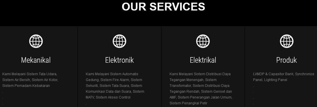 Saat ini kami telah mendapatkan kepercayaan dari pemberi tugas disejumlah pabrik, kantor, gedung, apartement, hotel, perumahan, bandara, penyedia jasa telekomunikasi dan lain-lain, untuk proyek-proyek yang diberikan dengan hasil memuaskan.